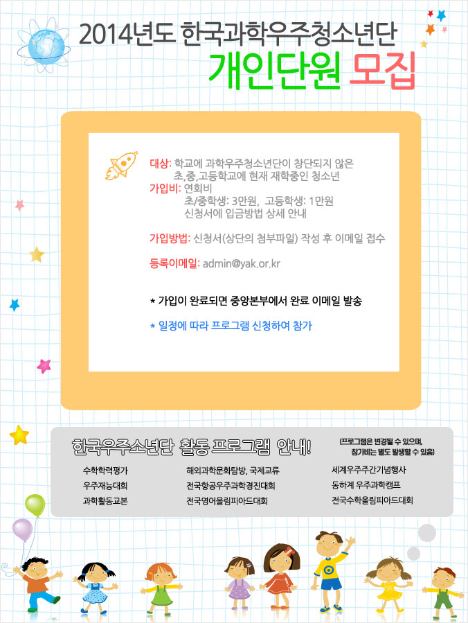 | [모집] 2014 한국과학우주청소년단 개인단원 모집 | ||