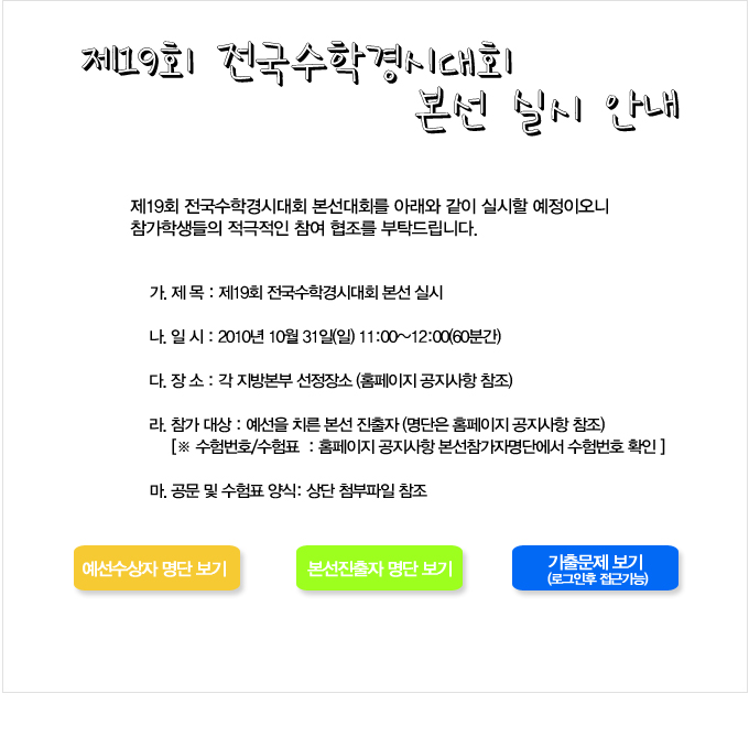 | [안내]제19회 전국수학경시대회 본선실시 안내(수험표) | ||