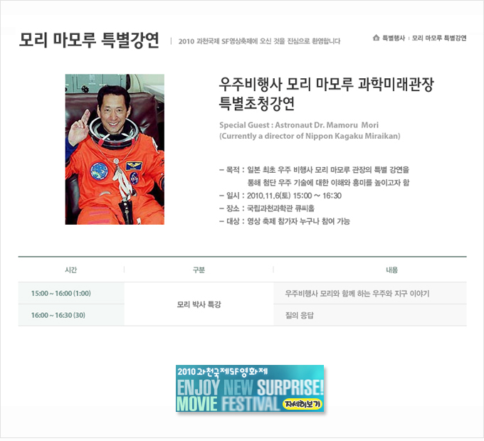 | [안내]우주비행사 모리 특별초청강연 | ||